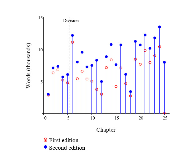 | Editions compared | Extra words by chapter |